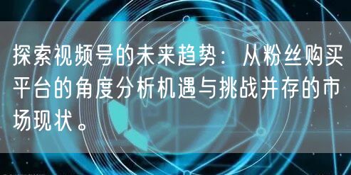 随着互联网的普及和数字化时代的到来,短视频已成为人们获取信息、娱乐消遣的重要途径之一。在此背景下,视频号作为短视频的重要载体,其发展前景备受关注。而粉丝购买平台的兴起,更是为视频号的发展带来了新的机遇和挑战。本文将从粉丝购买平台的角度,探讨视频号的未来趋势。