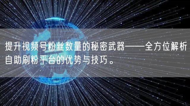 随着视频号的兴起,如何快速提升粉丝数量成为每个视频号运营者关注的焦点。本文将带你深入了解自助刷粉平台,揭示其优势与技巧,助你实现粉丝数量的大幅增长。